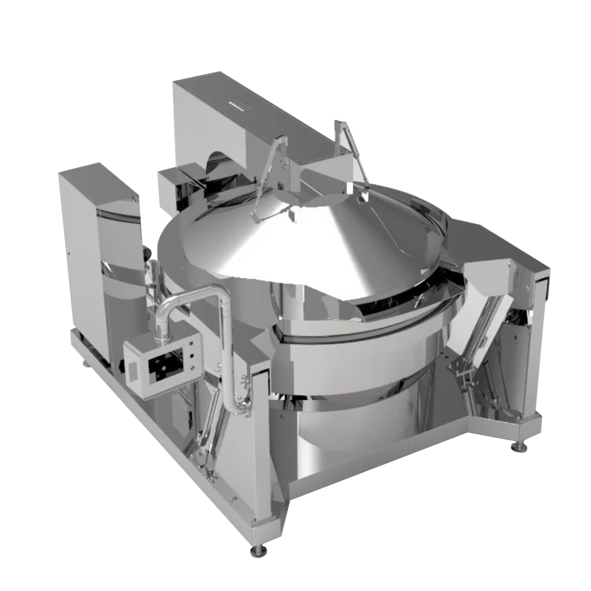 主要?于?制品等固狀產(chǎn)品的煮制或?制,整機程序化控制,進料后?需員?操作,??減少員?勞動強度等,?動控溫、?動控時、?動攪拌、?動翻鍋。